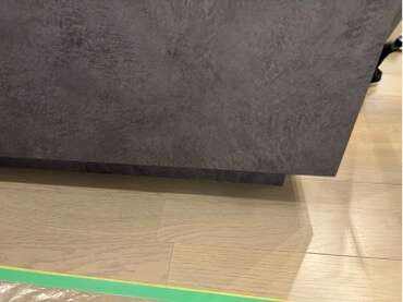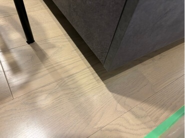 今回は工務店様より、フローリングの段違い補修です。マンション内部のリフォームで、キッチンを新調する際床の一部が隠れず継ぎはぎになってしまうため段違いになった部分をある程度目立たなくしてほしいというご依頼でした。